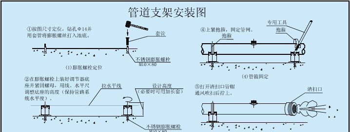 曝气装置由橡胶膜微孔曝气器、布气管道、调节器、连接件、清除装置等组成。布气管道环形布置,橡胶膜微孔曝气器按供气量和池形布置密度、曝气器和布气管道的连接采用G3/4螺纹连接,底座(固定于布气管道上)橡胶膜微孔曝气器为外螺纹,安装时先把调节器按所需尺寸膨胀累栓固定在池底,然把布气管道固定在调节器上。为防止其它作业如电焊火花和土建时,混凝土等重物损坏曝气装置,需等土建后在放水前把曝气器装上,为防止管道和连接部分漏气,应放水超过曝气器10cm左右水深试漏,通气管道连接部分漏气应及时排除,然后正式投运。