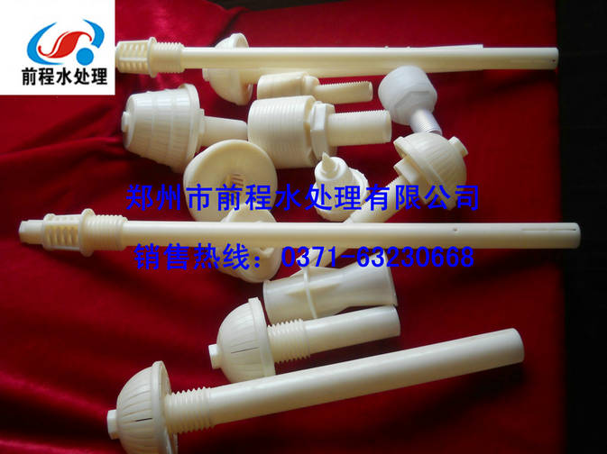 反冲洗滤帽;滤头是滤池底部配水系统汽水反冲冼装置,它能有效地冲洗出滤池中的污泥杂物,保证滤池水质水量正常运行;滤头的种类有(长、短柄)磨菇型、梅花型、塔型和圆柱型,均采用ABS工程塑料制成,结构合理,连接牢固,承压强度高,缝隙不变型,能使滤板间无死水角区,不积泥,效果好。长柄滤头常用于滤池汽水反冲洗配水系统;短柄滤头应用于单水反冲洗和重力式,压力式滤罐及离子交换滤床等水处理设备的过滤装置。滤头滤帽用于城市饮用水,工业用水净化,滤头滤帽是高纯水,矿泉水经营中的净化材料,滤头滤帽有效脱除水中的COD,色素,臭气毒害物质。